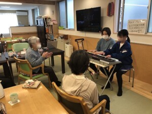 とても真面目で可愛い女子学生さんに、ご利用者様も「かわいいねえ」「えらいねえ」とみなさま目元が緩んでおられました(笑)