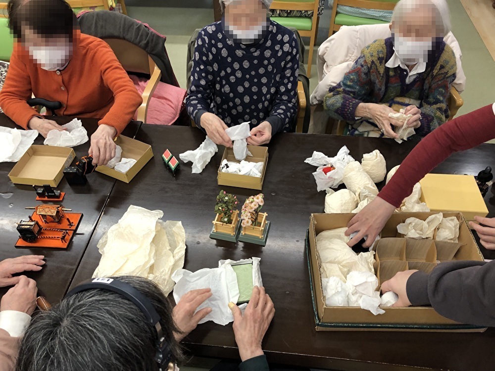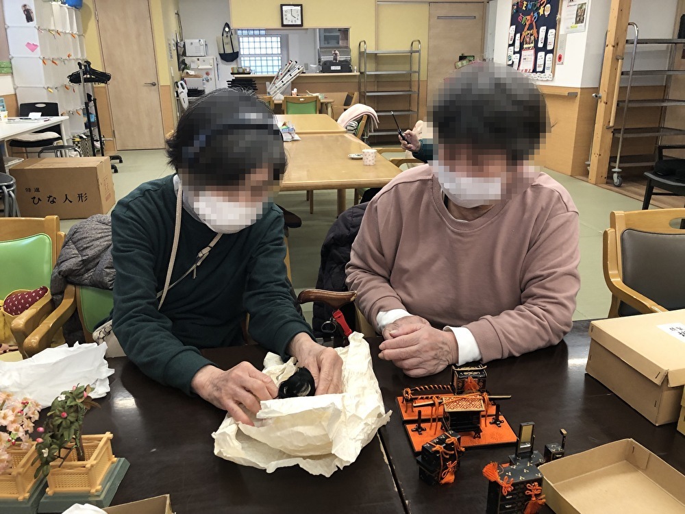みなさんで雛人形を出して・・・