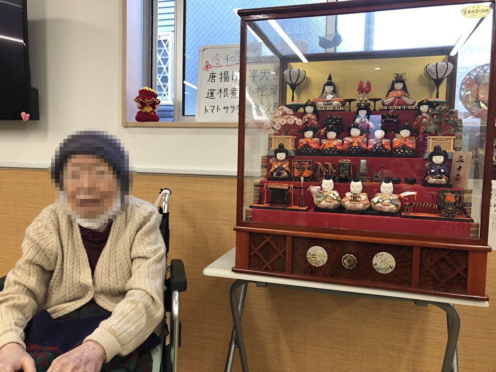 おやつには雛人形パッケージのお菓子や、お風呂はピンクの入浴剤入りでゆっくりと入浴していただきました。