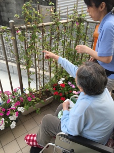 サニーサイドホームすずでは入居者様が、初夏に玄関前で満開だったあさがおの種とり☆